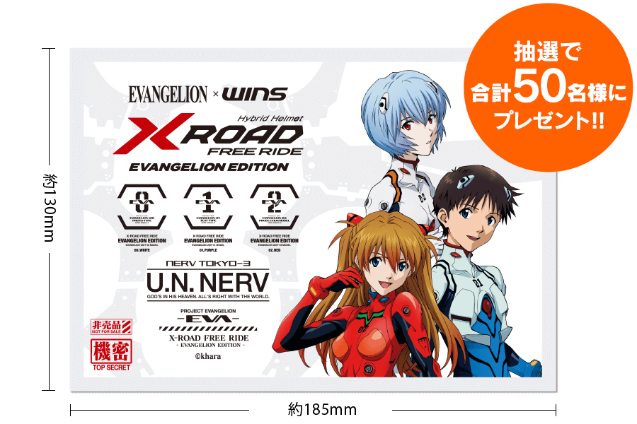 ウインズ公式ツイッターアカウント(@WINS_JP)をフォロー&対象投稿リツイートしていただいた方の中から抽選で合計50名様にエヴァンゲリオン × X-ROAD FREE RIDEコラボレーション・オリジナルミニタオル ヘルメットクリーナークロス(非売品)をプレゼントします。