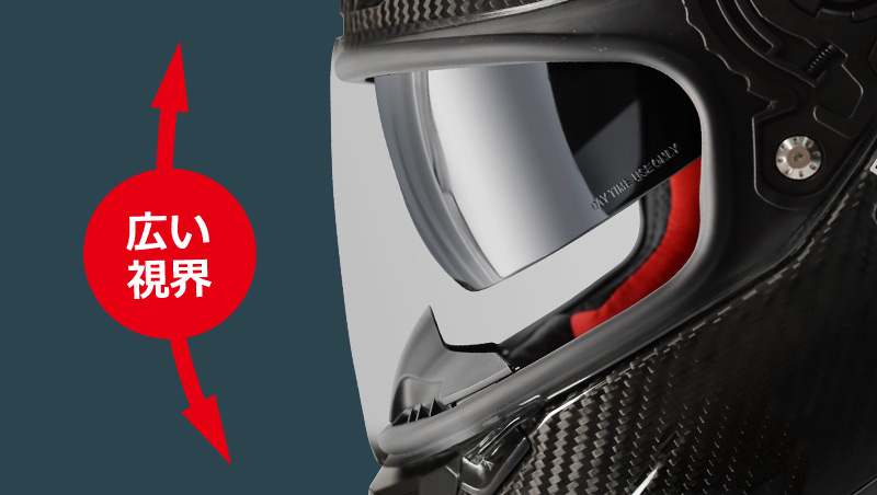 A-FORCE RSは、シールドがワイドビュー設計なのでフルフェイスでも視界が広く、視界によるストレスを軽減しています。