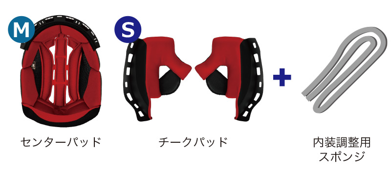 Mサイズのセンターパッドと、SサイズのチークパッドがセットになったM-Slimサイズが新たに登場!また、このサイズには、内装調整用スポンジが付属します。