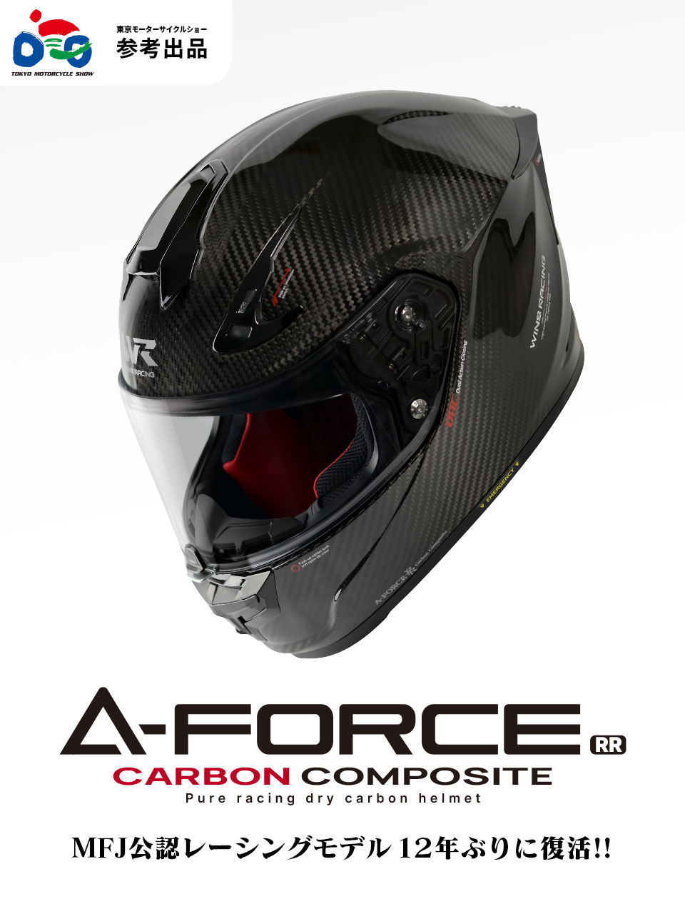 初代A-FORCEから約12年ぶりとなるMFJ公認のレーシングモデル。ウインズが得意とする軽量かつ強靱なドライカーボンをベースに自身がライダーとして活躍する代表みずから試験・開発をすすめ、より実践的な能力を持つヘルメットを開発しました。軽さ、強さ、空力、吸気量と快適性随所にこだわったウインズ渾身のフラッグシップモデルです。