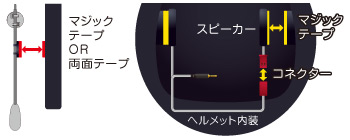 接続コネクタの採用により、スピーカーの着脱が可能。それにより「内装が外せないヘルメット」にも装着することができます。