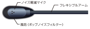 また、強度の高いフレキシブルアームを採用し、風による影響(ブレ)を押さえ、ノイズを軽減します。