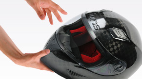 シェルには硬くて軽い「カーボン」と防弾チョッキに使用される強靭な繊維「ケブラー」を独自のプレス技術で1つに形成した6層ドライカーボンを採用。強さと軽さを両立。