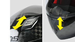 走行中にグローブをつけたままでも操作しやすいようにスライド式ベンチレーションを採用しました。