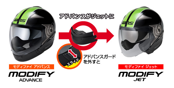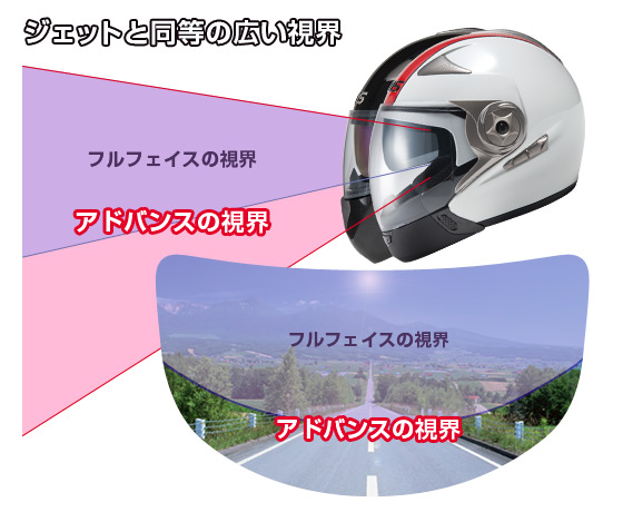 ジェットタイプの視界の広さで走行中快適な視界が広がります。また、アドバンスガードでアゴ部分が保護されています。
