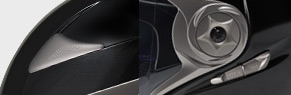 "フォグウイン"はシールドとの間に空気層をつくることで、外気と内気の温度差を減らし曇りを防ぎます。