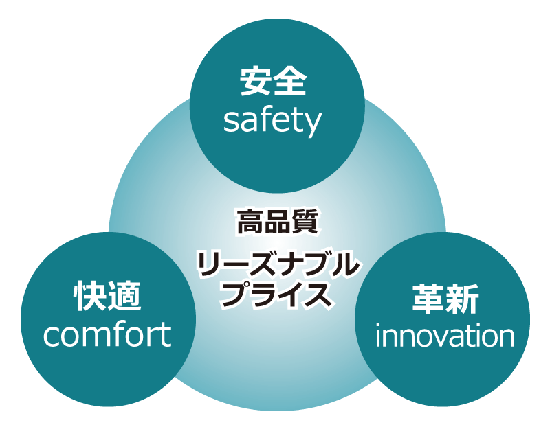 開発キーワードは「安全-safety-」「快適-comfort-」「革新-innovation-」。